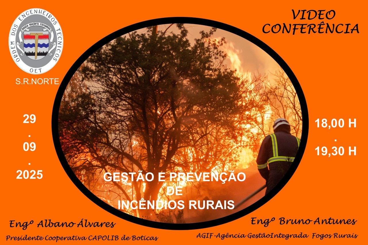 A Secção Regional do Norte da OET irá realizar uma Videoconferência, subordinada ao tema "Gestão e Prevenção de Incêndios Rurais", no dia 29 de setembro, pelas 18h00, via zoom. A crescente frequência e intensidade dos incêndios rurais impõem novos desafios à gestão do território e à proteção das comunidades. Nesta videoconferência, vamos abordar estratégias eficazes de prevenção, planeamento florestal e resposta integrada aos incêndios, reunindo especialistas da àrea e promovendo o debate sobre soluções sustentáveis e colaborativas. Data: 29 de setembro Plataforma: Zoom Link de Acesso: Clique aqui para ingressar na Conferência Clicar no link, no dia e hora marcados e entra diretamente na Conferência