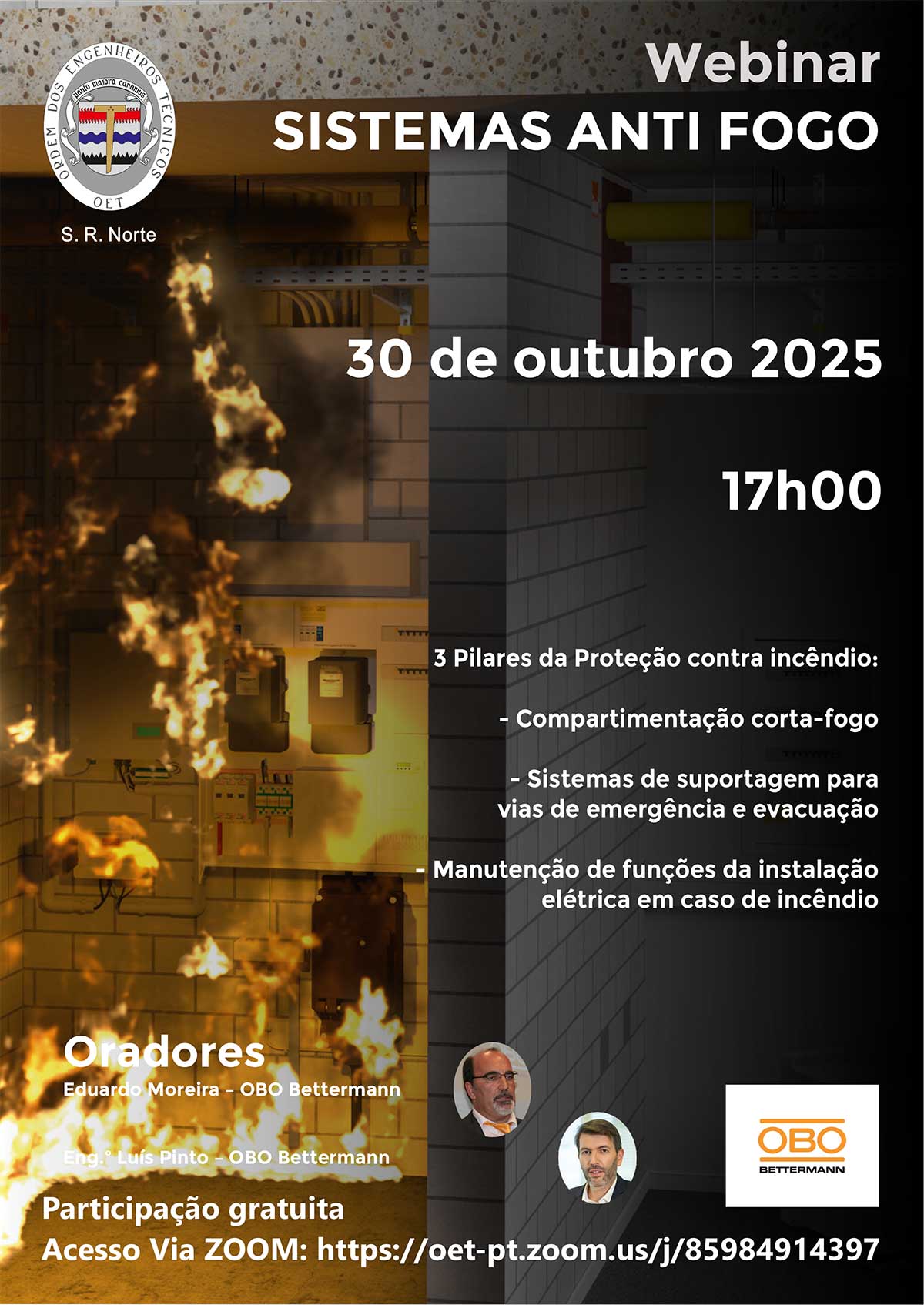 A Secção Regional do Norte da OET irá realizar um Webinar subordinado ao tema ” SISTEMAS ANTI FOGO”, no dia 30 de outubro, pelas 17h00.